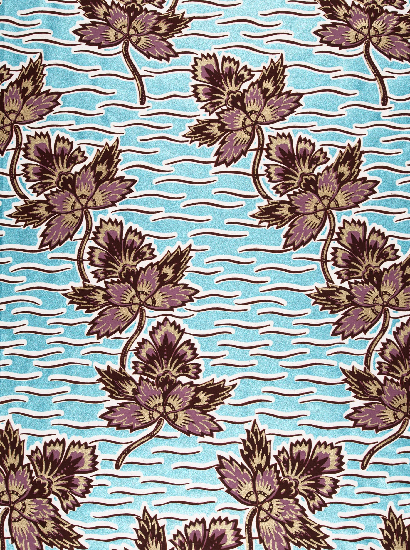 Wax Glitter Glam is a luxurious print design on cotton satin, richly embellished from edge-to-edge with shimmering metallics covering 40-60% of the surface. With minimal use of block colours, Wax Glitter Glam is treated with a lustrous finish.