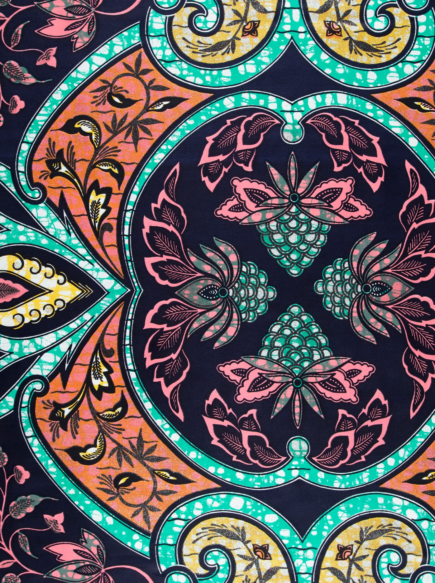 Grand Super-Wax stands out with its rich colours and intricate designs, bringing each detail to life. This exclusive Vlisco fabric is known for its signature shine, created with a delicate layer of sparkles and a unique finishing process. The cotton satin base not only enhances the vibrant colours but also provides a luxurious feel. Each piece showcases the meticulous craftsmanship and design focus that Vlisco is renowned for.