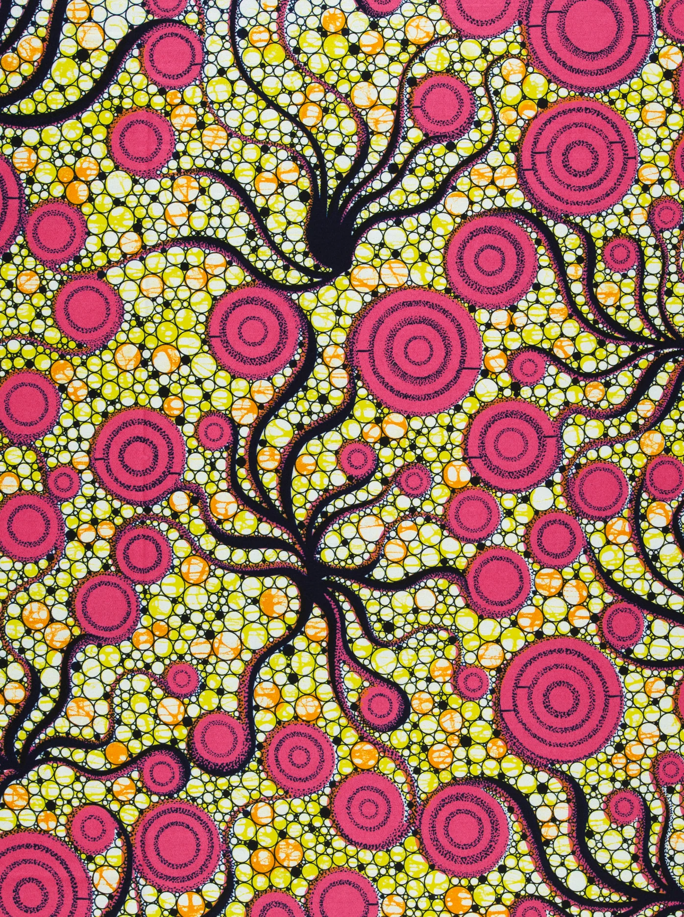 Introducing Vlisco's innovative duo-colour bubble effect for the very first time, Super-Wax is distinguished by its unique open and expressive design. Created in the 1970s, this fabric features crisp super cotton that combines durability with a subtle, shiny finish. The inventive bubble effect adds a dynamic visual element, making Super-Wax a standout choice. Its high-quality material and expressive design ensure that it remains a timeless and versatile addition to any collection.